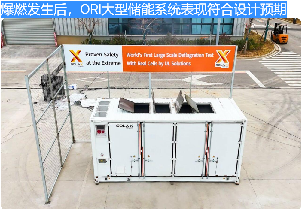 爆燃发生后,ORI大型储能系统表现符合设计预期