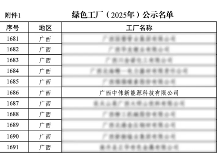 近日,国家工信部公布2025年度国家级绿色工厂名单,中伟集团旗下子公司广西中伟新能源科技有限公司(又称”中伟钦州产业基地”)凭借在能源低碳化、资源高效化等领域的突出表现入选名单,荣获"国家级绿色工厂"称号,成为公司继铜仁、宁乡后第三个获此殊荣的产业基地,也是绿色工厂新国标发布后首批入选的企业之一。