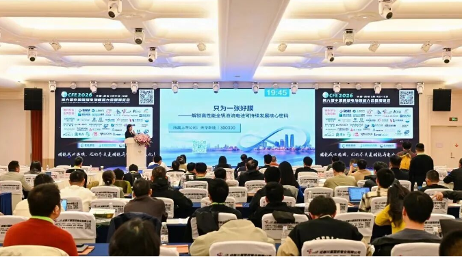 3月17日至18日,全球规模最大的液流电池行业盛会——CFE2026第六届中国液流电池储能大会暨展览会在杭州举行。天华新能作为高性能离子交换膜领域的代表企业受邀参会,并发表题为《只为一张好膜:解锁高性能全钒液流电池可持续发展核心密码》的主题演讲。