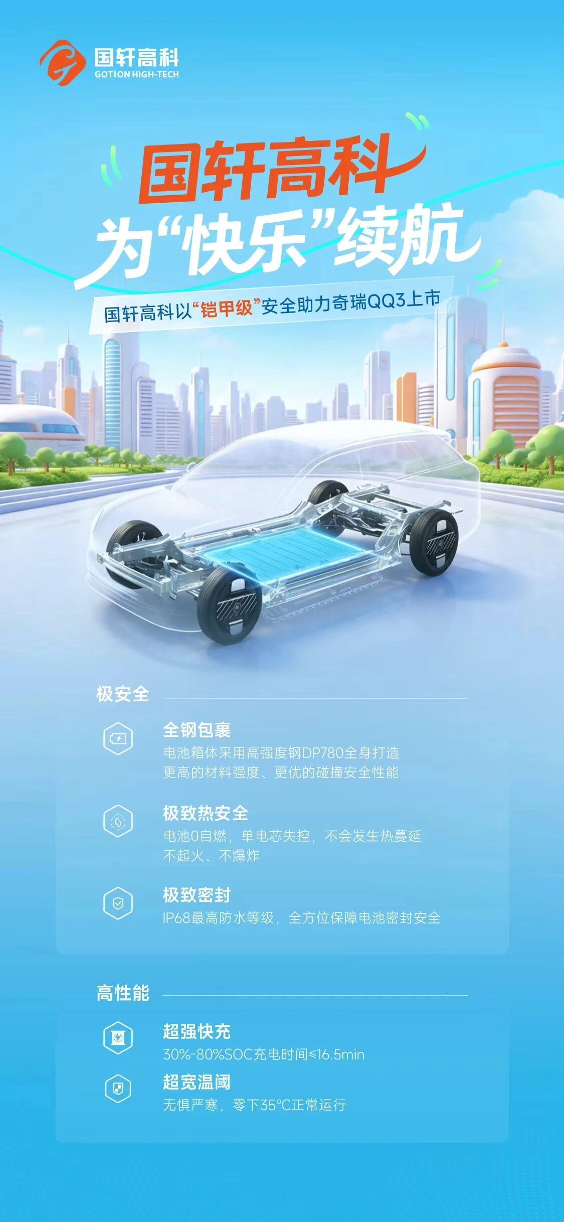 国轩高科与奇瑞QQ3的携手,是技术实力与市场信任的双向奔赴。凭借国轩高科独家供应的“铠甲级”安全电池,奇瑞QQ3不仅将续写其作为国民小车的经典传奇,更将以超越期待的安全性能,赢得万千家庭的信赖。