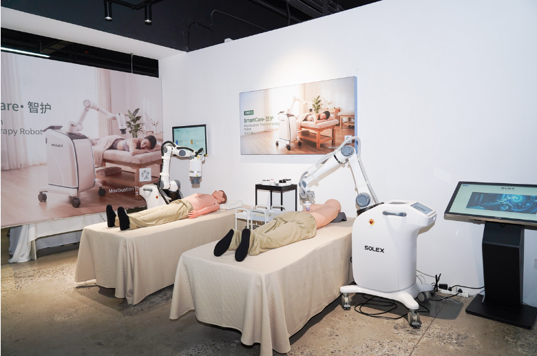 在医护康老的场景,粘本明总经理带大家体验了床边护理机器人组织是如何解决传统照护人员的痛点,如何在减少照护工作量的同时提升照护品质。