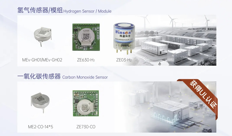 炜盛科技储能安全传感器解决方案,集合了一氧化碳、二氧化碳、氢气、VOC气体、温度、火焰等指标,采集多维指标,为用户提供更早、更准、更可靠的预警信息,以核心感知筑牢安全保障能力。