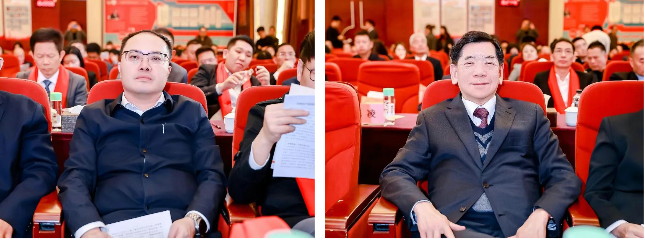 蔡岳会长与协会荣誉会长:全国政协经济委员会副主任、特首政策组经济发展专家组成员、友邦保险(国际)有限公司区域执行总监及荣誉顾问容永祺,全国政协委员、香港选举委员会委员、香港江西社团联谊总会主席、香港毅德控股集团董事局主席王再兴,全国人大代表、香港兴祥集团控股有限公司董事长兼创始人蔡毅,全国⼈⼤代表,海峡两岸⼤湾区集团董事局主席蔡培辉,全国政协委员、香港深圳社团总会主席、中国波顿集团董事会主席兼总裁王明凡,全国人大代表、科力尔电机集团董事长聂鹏举;协会名誉会长:全国人大代表、全国青联常委、当代著名窑变艺术家许泽荣,全国政协委员、深湾控股集团董事长邹建民;港区全国人大代表、粤港澳大湾区上市公司联合会监事长兼独董委员会主席林至颖,第十四届港区全国人大代表、 粤港澳大湾区上市公司联合会荣誉顾问孙伟勇;协会名誉会长:粤港澳大湾区上市公司联合会创会主席、中国万天控股创始人董事局副主席兼 CEO钟学勇,广西政协委员、广州市白云区人大代表、东呈酒店集团董事长程新华,铜锣湾集团董事局主席陈智,深圳市政协经济委员会副主任、深圳海王集团执行总裁高锦民;中国工程院院士、协会高级顾问、深圳市建筑设计研究总院首席总建筑师孟建民;协会荣誉顾问、 深圳市人大代表、联洲国际信用评级有限公司董事长许建洲;协会监事长:广东省政协委员、深圳市政协常委、衡佳投资集团董事长朱小萍等协会领导、各界领袖、会员单位代表两百余人齐聚一堂,回顾协会发展成果,凝聚行业发展共识,为新一年高质量发展筑牢根基。