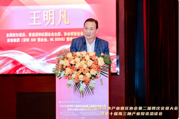 全国政协委员、香港深圳社团总会主席、协会荣誉会长、中国波顿集团董事会主席兼总裁王明凡指出,深圳产业园区正成为创新要素整合者与产业生态培育者,需以格局、生态、责任三重引领对接国家战略、促进要素融通、实现绿色发展,协会在其中应发挥政企桥梁作用,精准服务企业。最后,他呼吁企业家敢于投入技术创新与数字化转型,积极把握出海机遇拓展全球市场,共书发展新篇章。