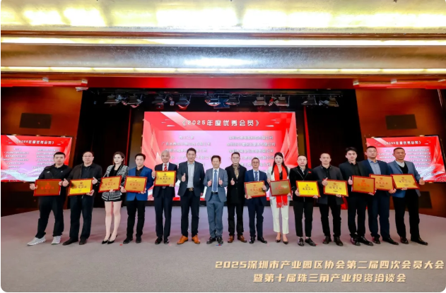 中国波顿集团有限公司 深圳市朗华供应链服务有限公司 深圳市港鸿基投资发展有限公司 深圳市美生产业集团有限公司 研祥高科技控股集团有限公司 河北深保投资发展有限公司 深圳市鸿荣源企业发展(集团)有限公司 深圳市大族物业管理有限公司 2025年度园区创新示范奖 获奖名单 (向上滑动阅览) 顺发集团(香港)控股有限公司 华家运营管理(深圳)有限公司 深圳市奋达科技股份有限公司 中山市物资集团有限公司 领亚电子科技股份有限公司 深圳市合强创新科技园有限公司 瑞安实业(香港)有限公司 深圳市和谷投资有限公司 深圳新浩苑科技有限公司 骏德时代(广州)产业园运营有限公司 深圳市利荣达投资有限公司 广东科鑫产业孵化有限公司 2025年度个人突出贡献奖 蔡毅荣誉会长、王明凡荣誉会长共同为荣获“2025年度个人突出贡献奖”的企业家代表颁奖。 获奖名单 (向上滑动阅览) 华坚集团张颖副总裁 德盈投资集团(惠州)有限公司杨伟方董事长 广西壮都集团科技有限公司蒋满州董事长 大象国际控股集团有限公司伍易德 创始人兼CEO 深圳市中盈置业发展有限公司邹仁航董事长 中国水环境中蓉投建实业有限公司林位玉副董事长 深圳市港鸿基投资发展有限公司莫和董事长 太平洋建设集团有限公司姜伟盛副总裁 深圳市美生产业集团有限公司李捷利董事长 深圳华家实业集团有限公司胡春萍董事长 深圳市靖洋集慧科技投资有限公司刁俐颐总经理 深圳市山天智慧财产投资有限公司印兰董事长 广东华域重工有限公司赵付欣总经理 深圳华可可建设集团有限公司黄微洁副总经理 研祥集团腕宝部门李明星总监 广西中膳投资集团有限公司唐杰赟董事长 深圳三合智义科技有限公司杨杨董事长 2025年度产业卓越生态伙伴 蔡培辉荣誉会长为荣获“2025年度产业卓越生态伙伴”的企业代表颁奖。 获奖名单 (向上滑动阅览) 香港铜锣湾集团 深圳市衡佳投资集团有限公司 心里程控股集团有限公司 中建四局土木工程有限公司 广东美的暖通设备有限公司 太平洋建设集团有限公司 中国联合工程有限公司 江苏省华建建设股份有限公司 中交一公局深圳建设有限公司 深圳市建筑设计研究总院有限公司 深圳市创艺园文旅股份有限公司 广州窝趣公寓管理有限公司 深圳中商产业研究院有限公司 上海市锦天城(深圳)律师事务所 深圳万商红投资控股有限公司 深圳市明源云科技有限公司 2025年度优秀会员 许泽荣名誉会长、伍易德常务会长,程正伟常务会长、陈发全常务会长和肖奋副会长、研祥集团石中玉总经理为荣获“2025年度优秀会员”的企业代表颁奖。 获奖名单 (向上滑动阅览) 海王集团海王之家 广东木桦供应链科技有限公司 深圳市福美投资有限公司 中联恒创(山西)科技有限公司 广东业海控股有限公司 铭胜控股集团 抱朴物业集团 深圳和华国际工程与设计有限公司 深圳市博瑞联科技有限公司 深圳市中德保安服务有限公司 深圳市隆金达实业有限公司 广东祥文建设工程有限公司 泓源建工集团有限公司 亚洲淀粉胶囊及原料供应有限公司 深圳高深建设工程有限公司 金爵五金塑料(深圳)有限公司 臻金腾科技(深圳)有限公司 深圳锦洲工程管理有限公司 洛基山有限公司(中国香港) 沁蓝峰水业(深圳)有限公司 深圳水木梦象能源科技有限公司 深圳市美侨教育咨询有限公司 五福临门财税法服务(深圳)有限公司 广东卓建律师事务所 深圳市海博伦文化传媒有限公司 深圳市华盛昌科技实业有限公司 深圳弘星智联科技有限公司 深圳百步印社科技有限公司 深圳市招华国业工程咨询有限公司 深圳市惠高洁智能清洁科技有限公司 广东鹏音律师事务所