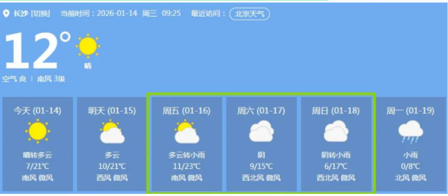 2026年1月16-18日,温度在6至23度之间,多云转小雨,微风。