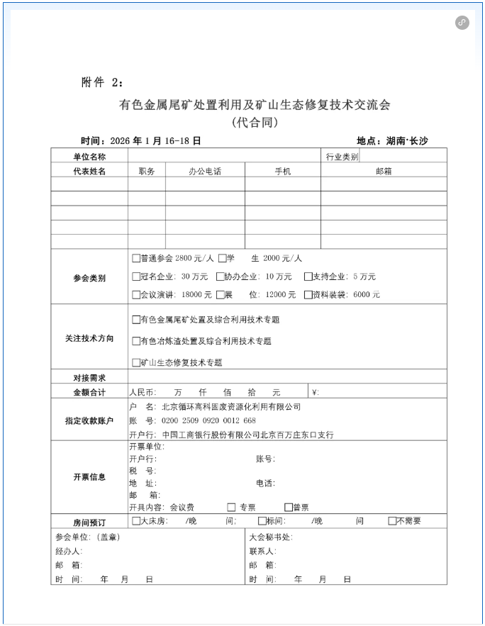 2.“有色金属尾矿处置利用及矿山生态修复技术交流会”参会回执