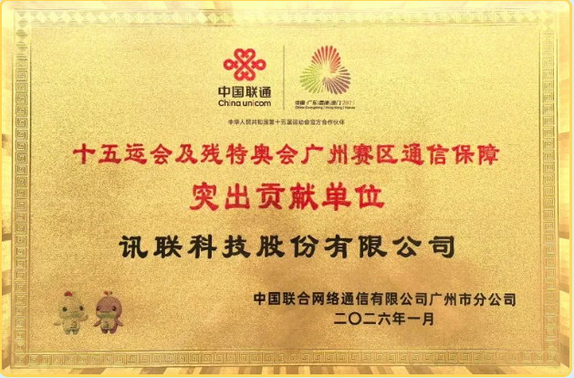 会上,讯联科技凭借在赛事期间卓越的通信保障服务与突出贡献,被授予“突出贡献单位”荣誉称号,这份沉甸甸的奖项,是对全体保障人员日夜坚守、攻坚克难的最高肯定,更是对讯联人匠心服务与科技实力的权威认可。