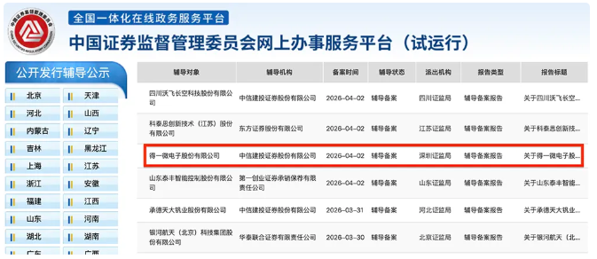 芯东西4月7日报道,4月2日,证监会官网披露,广东深圳AI存力芯片企业得一微在深圳证监局办理上市辅导备案登记,启动A股IPO进程,辅导机构是中信建投证券。