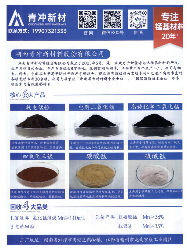 湖南青冲新材料股份有限公司 化工锰粉(二氧化锰) 电解二氧化锰 高纯化学二氧化锰 碳酸锰 硫酸锰 四氧化三锰和锰砂