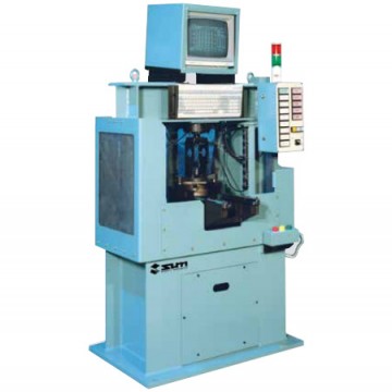 在防震橡胶生产线的最终工序,测量动态特性并进行自动判定的检查机器。